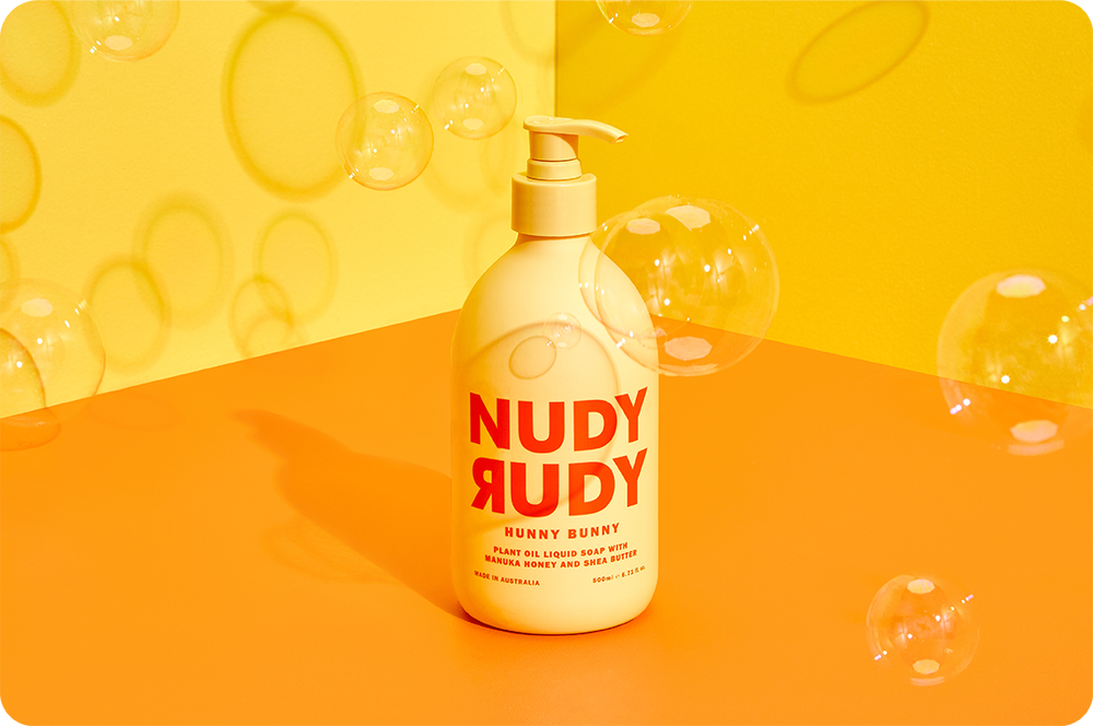 Hand Wash: Get those hands wet and add hand wash. Use daily for soothing, soft hands and with NUDY RUDY Hand Cream.